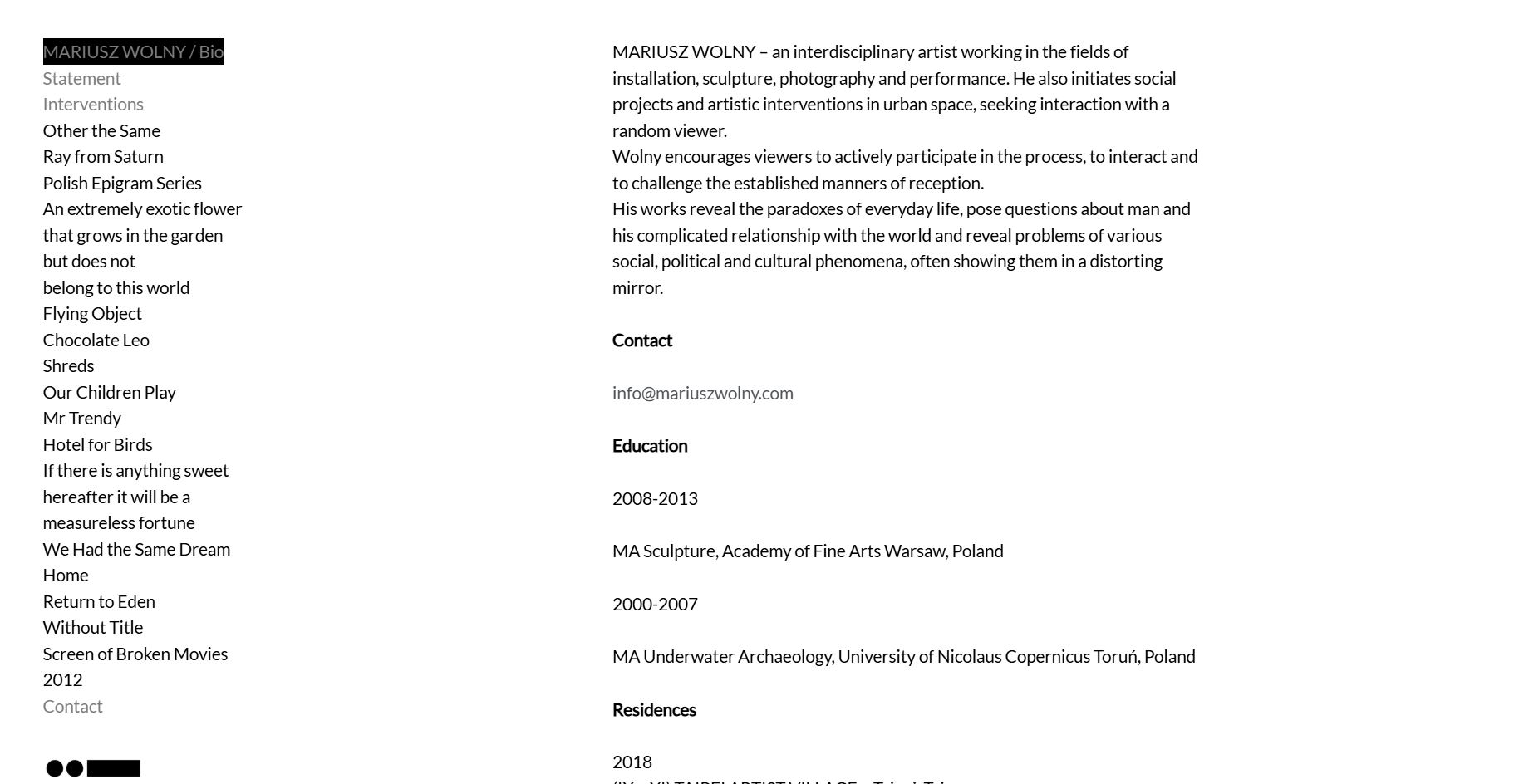 Mariusz Wolny – Sculptor and Interdisciplinry artist